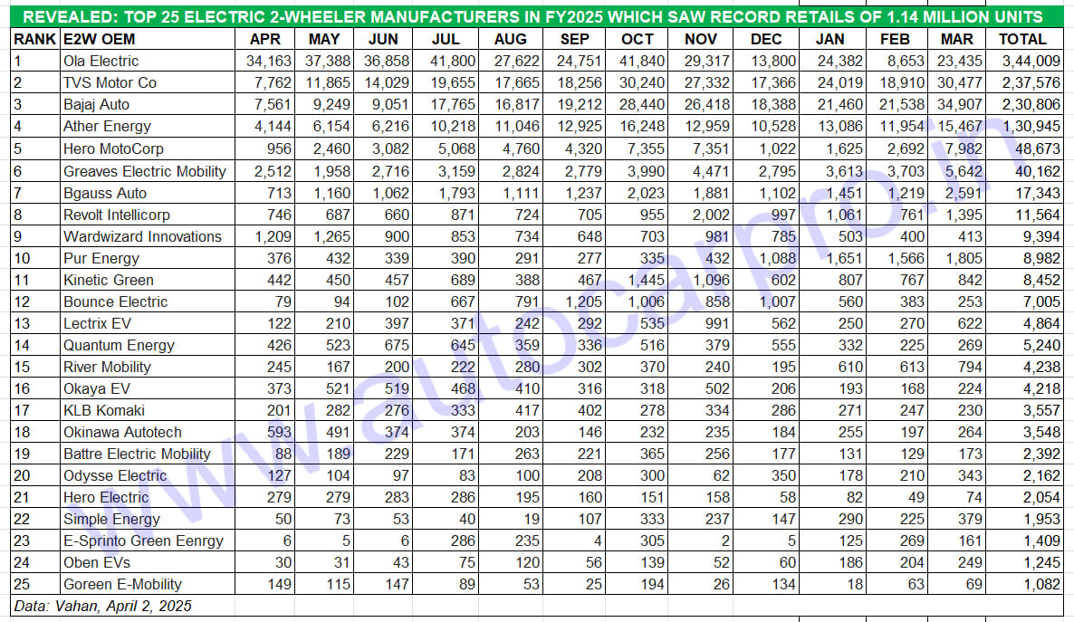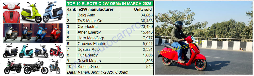 Legacy OEMs Bajaj Auto (34,863 units) and TVS Motor Co (30,453) have both hit their best-ever monthly retails in March 2025, as also for FY2025.