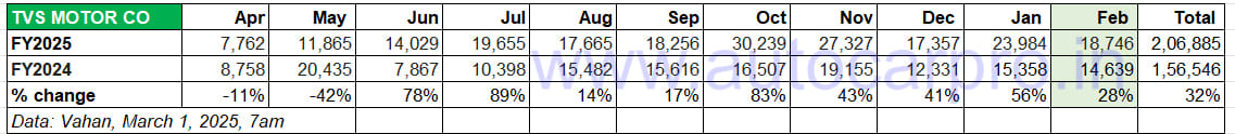 Overall e2W industry sales though in February 2025 at 75,995 units are down 8% YoY (February 2024: 82,744 units) and 22% on January 2025’s 98,259 units. Nevertheless, despite the month being the third-lowest monthly sales – after April 2024: 65,554 units and December 2024: 73,721 units – in the 11 months of the current fiscal year, they have helped overall numbers ride past the million-units milestone for the first time in a fiscal year, with March 2025 still to be counted.