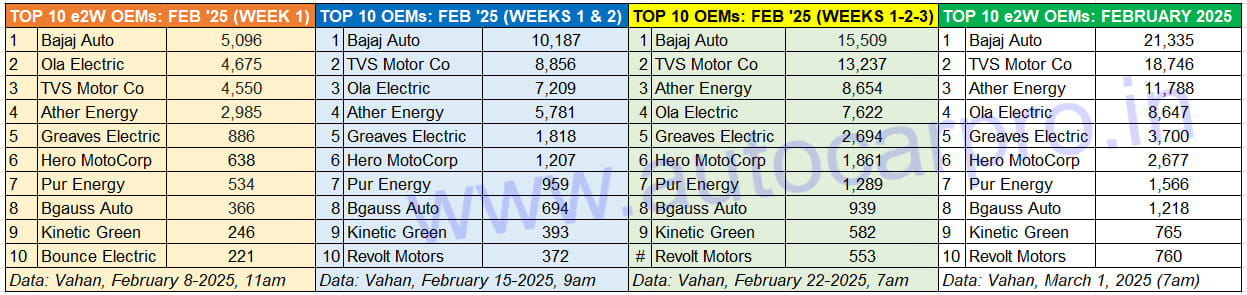 Weekly retail sales data for February 2025 shows that Bajaj Auto outsold the competition in each of the four weeks last month.
