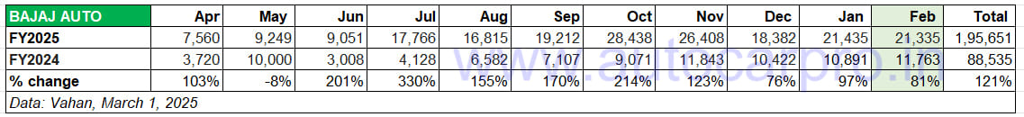 February 2025: 21,335 units, up 81% YoY / Market share: 28%