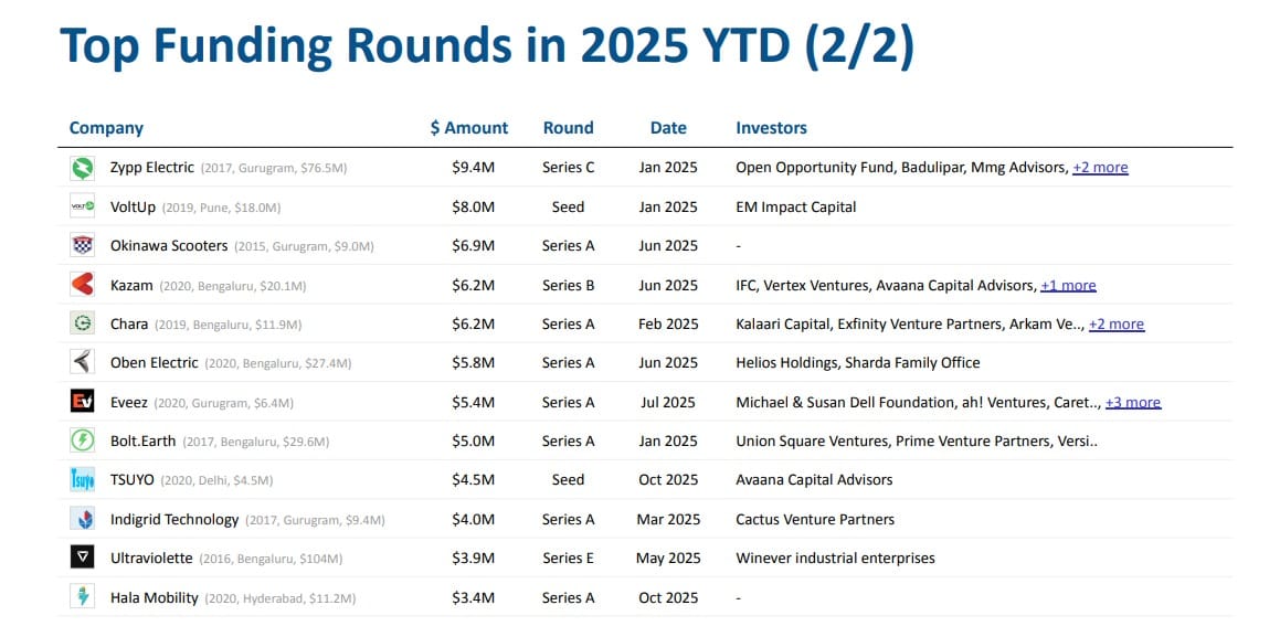 The big driver of the overall surge was late-stage funding, which more than doubled year-on-year. Investments at this stage rose to $1.1 billion in 2025 from $536 million in 2024, reflecting growing investor confidence in established EV brands and infrastructure companies.
