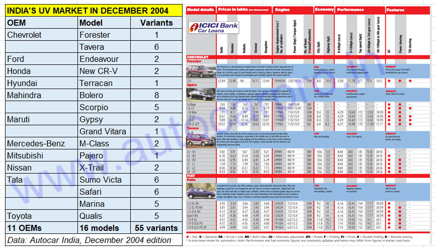 The Chevrolet Tavera, Toyota Qualis and the Mahindra Scorpio were among the movers and shakers of the utility vehicle segment in 2004.