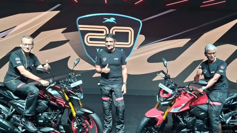 Marking two decades of its flagship performance brand, TVS Motor unveiled special anniversary editions on Saturday while reaffirming Apache's global journey and readiness to ride the wave of India's GST-driven demand surge.