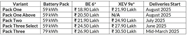 Deliveries of the two new BEVs equipped with the 79 kWh battery pack, which has a certified range of 682km (BE 6) and 656km (XEV 9e), will commence in mid-March 2025.