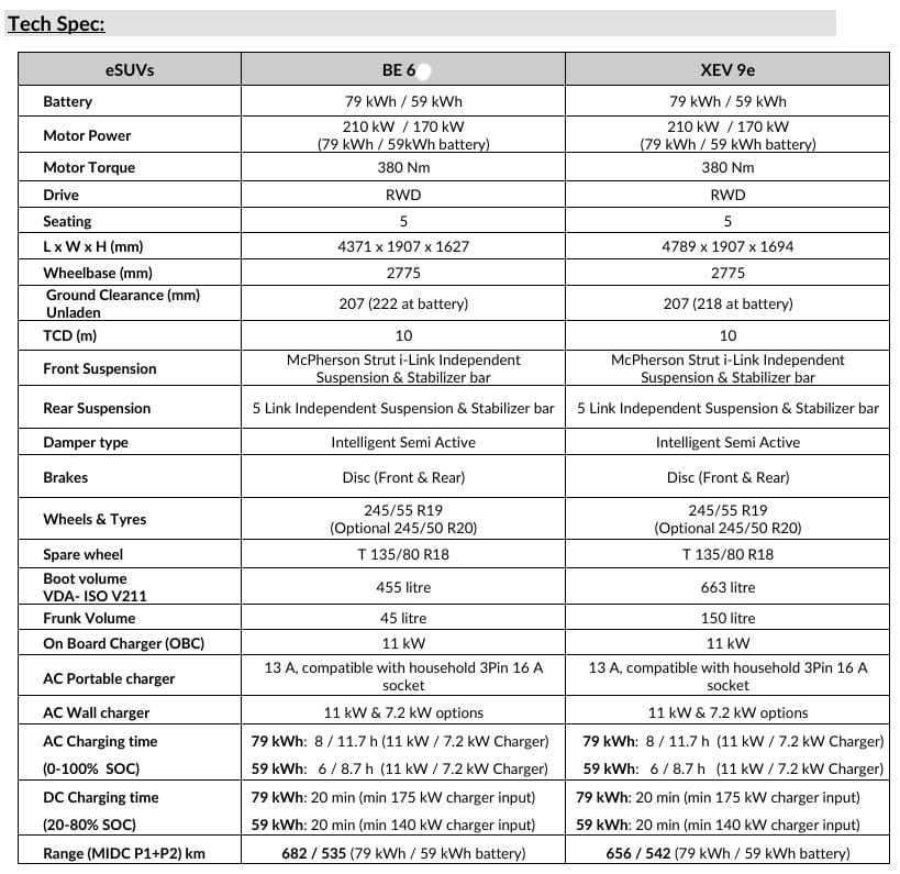 The 7-airbags-equipped BEV 6 and XEV 9e are also high on the safety quotient and both have aced the Bharat NCAP crash test with a 5-star rating.