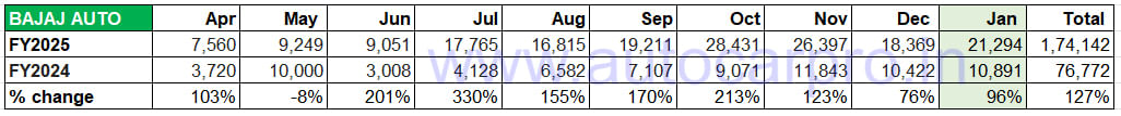 In CY2024, Bajaj Auto clocked best-ever annual retail sales of 193,439 Chetaks and 169% YoY growth (CY2023: 71,941 units). Given the current momentum it is witnessing, expect the Chetak to sell another 45,000 to 50,000 units in February and March 2025, which would mean total FY2025 sales in the region of 220,000 units and a new fiscal-year high.