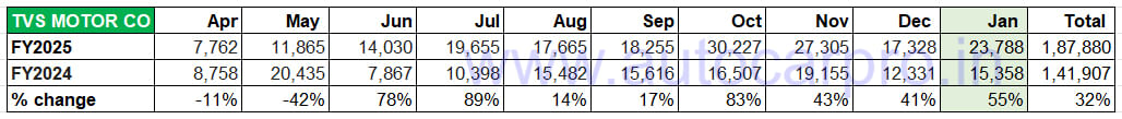 Hero MotoCorp’s January 2025’s retails at 1,615 Vida e-scooters make for 8% YoY sales growth (January 2024: 1,495 units) and they come on the back of a poor performance in December (1,022 units, down 36%). October (7,353 units) and November (7,351 units) have been the best months for Vida EV retails in the fiscal year to date.