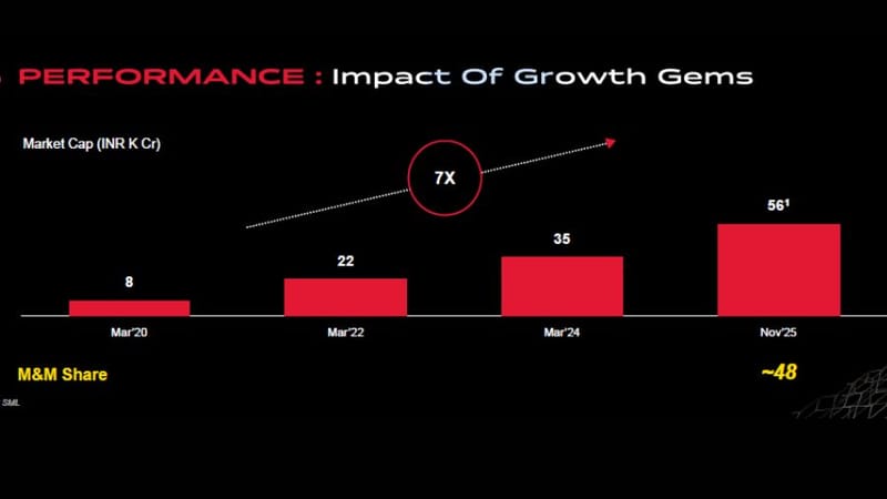 The impact of these Growth Gems has already seen M&M’s share of market capitalization grow sevenfold between March 2020 and November 2025.